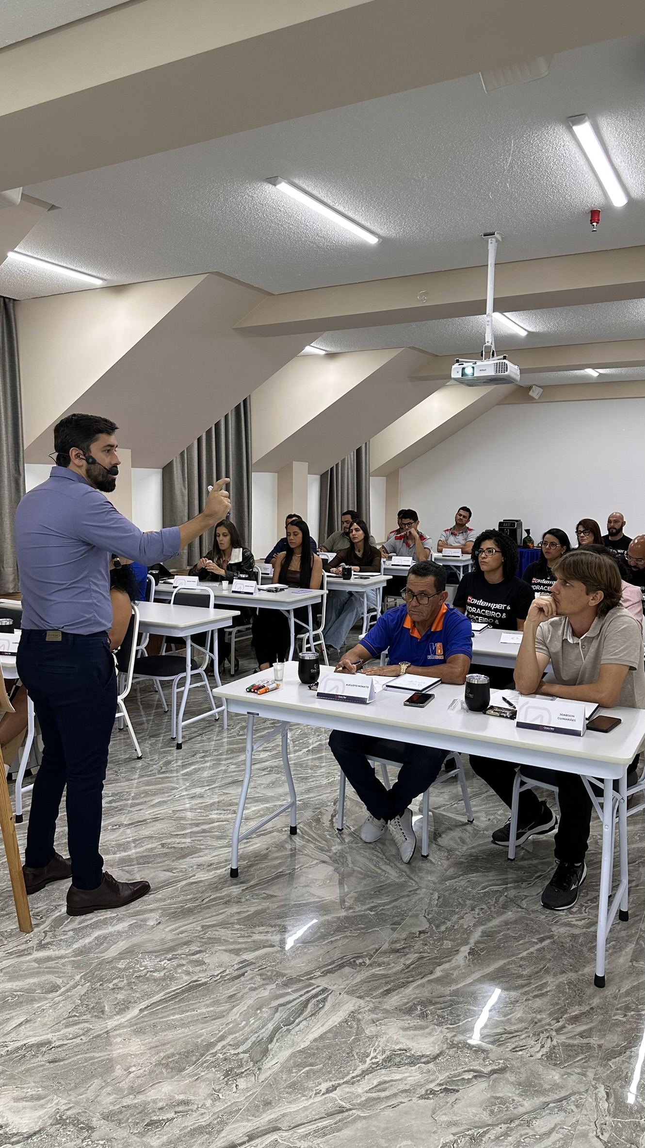 O foco do treinamento é desenvolver a capacidade do gestor de acompanhar a equipe, cobrar com clareza, conduzir reuniões produtivas, dar feedback, organizar a rotina comercial e sustentar os resultados do time.