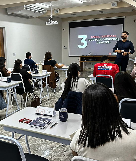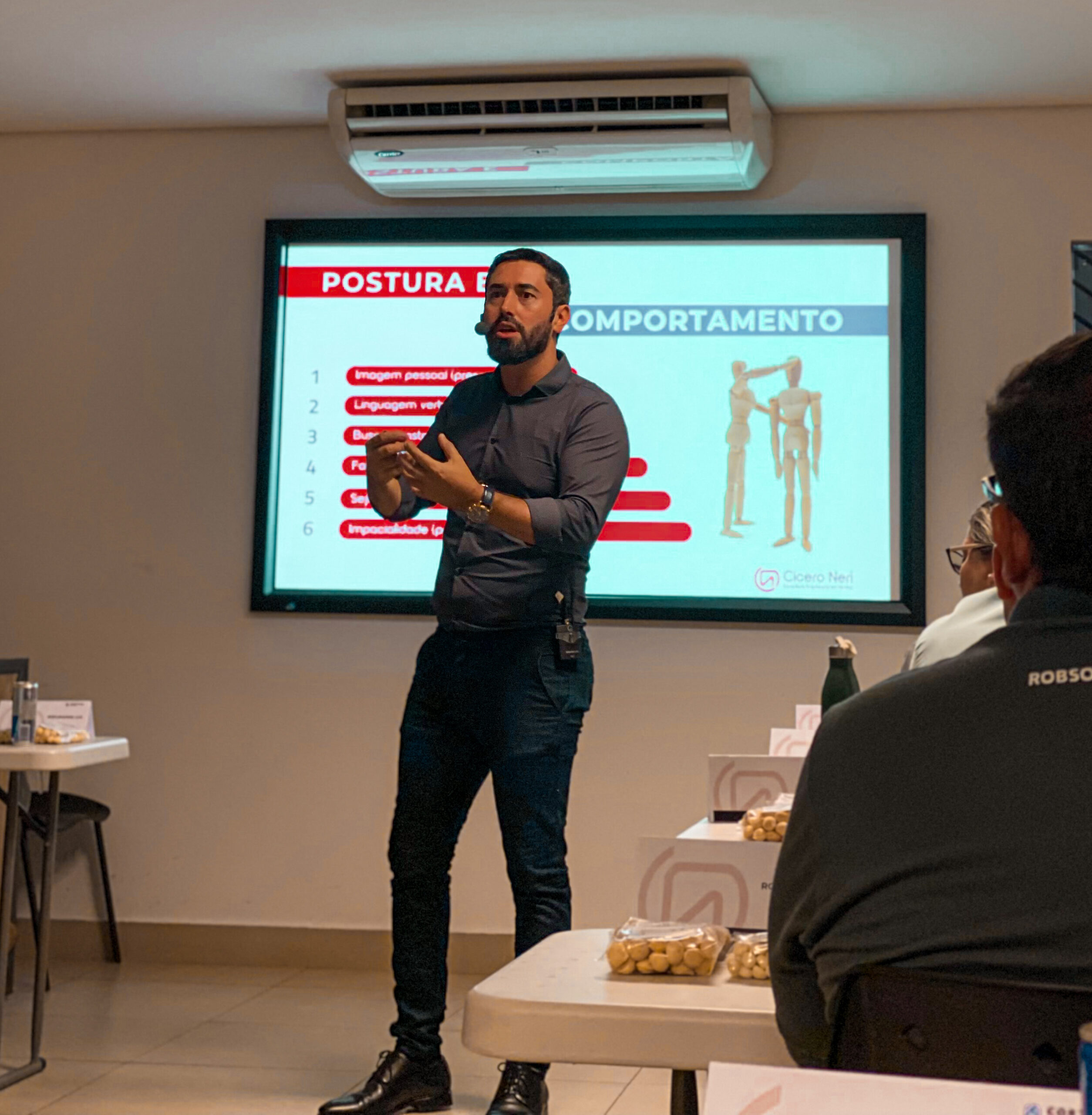 O treinamento trabalha pontos essenciais como abordagem ao cliente, condução da venda, follow-up, disciplina comercial, atendimento ao cliente e comportamento de vendedor profissional, contorno de objeções e fechamento da venda.